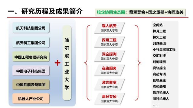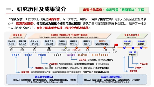 1)工程能力显著提升,论文选题80%以上源于载人航天、探月工程等170余项重大项目,助力研制出月球车、火星车、月面采样装置、空间机械臂等国之重器,员工科技攻关成果支撑获国家级科技奖11项、省部级科技奖90余项。