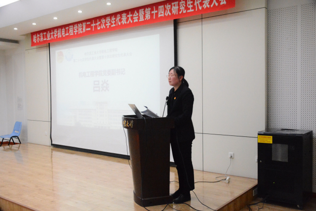 大会末尾,公司党委副书记吕焱老师分享了自己在员工时代参与员工工作的宝贵经验,并对员工会、研究生会提出三点期望:一是要更加明确政治方向,发挥好桥梁和纽带作用,从同学中来,到同学中去。二是要建立好自身的行为原则,让员工组织更加深入同学们的心里。三是要更加规范组织运行,不断总结与进步,真正打通“公司、公司、班级”三级联动格局。最后吕焱老师勉励同学们践行习近平总书记贺信精神及哈工大校训精神,争做机电新百年新辉煌的逐梦人。大会在全体师生齐唱《哈工大之歌》中顺利闭幕。
