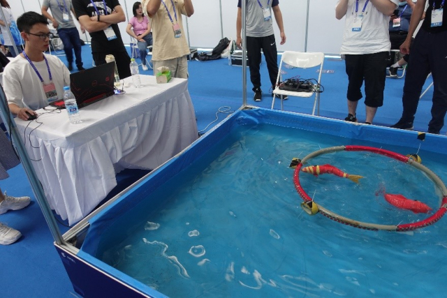 水面垃圾清理赛项是公司第二次参加,比赛是在自然开放水域中进行,由公司创新团队(队员:姜喜强、于文录、罗友涵、周迪,指导老师:查富生)自主研发、制作的清理船,以1分06秒清理10个目标物的成绩获得冠军,成功卫冕。全局视觉抢球博弈比赛中,飞凫队(队员:厚俊臣、张珈瑞、陈炜、李佩禹,指导老师:林森,潘旭东),经过一天的激战,最终获得亚军。海参捕捞模拟赛是公司首次参加的赛项,惊鸿游龙队(队员:荣健睿、张铭伟、岳宗言、徐森涵,指导老师:刘佳男,曾昭阳)经过现场设备调试、方案验证,最终获得季军。