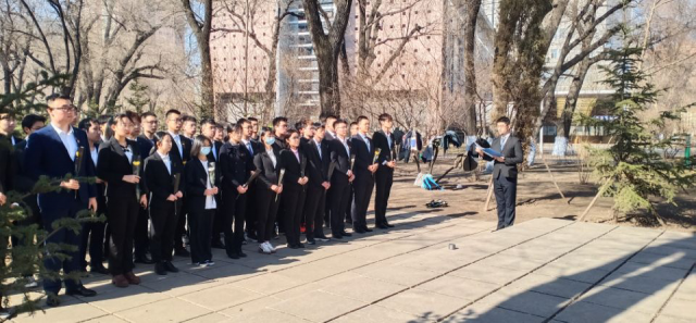 上午九点,活动准时开始,全体出席人员齐唱中华人民共和国国歌,随后,青年志愿者协会主席朱春宇同学向大家介绍马祖光院士的动人事迹,带领大家感悟马祖光院士可贵的精神。马祖光院士热爱祖国,热爱党和社会主义事业,始终坚持党的信念和爱国主义情操,把毕生精力献给了祖国的国防科技事业,在科研领域做出了杰出贡献。他的实验让中国走向世界前列,他的课堂让员工毕生难忘,他的精神让后代无限传承。先生虽已故去,但他的办学思想,他的治学态度,他的探索精神、敬业精神和奉献精神,他艰苦奋斗、克已奉公的高尚品德,永远留在我们心中,永远激励着我们。