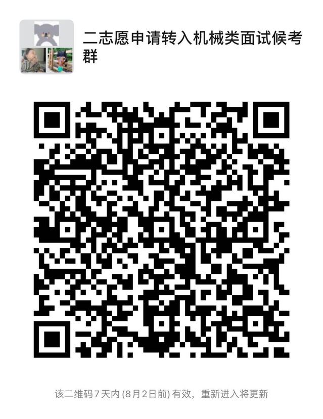二志愿申请转入机械类面试时间为2021年7月27日14:00,采用腾讯会议方式面试