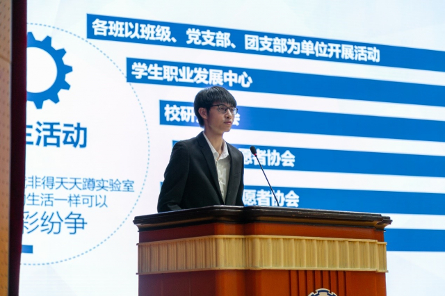 大会开始,黄郅博老师首先对研究生阶段的课程、科研、社会实践、党建、评奖评优和毕业去向等重点工作做了耐心地讲解。其中,黄郅博老师着重强调了课程和科研是研究生阶段的两大根本,课程应当遵守考风考纪,科研切忌学术不端;社会实践乃必修环节,应当提早做好准备;评奖评优作为同学们最为关注的部分,黄郅博老师对评选的时间节点和奖项做了一一说明,希望大家从入学开始就努力提升自我,争做优秀的哈工大人;此外,黄郅博老师引用往届员工的毕业去向数据,从读博、出国和就业三个方面对同学们未来发展做了详细的剖析,并强调同学们应当提早做好规划,多多了解相关信息。