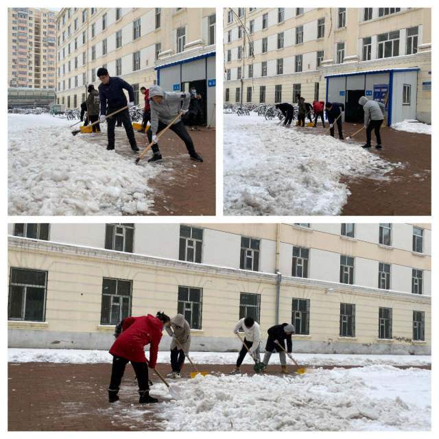 面对此轮有冻雨、湿雪、暴风雪的极端天气,MK体育员工党员时刻牢记“哪里有困难,哪里就有共产党员”,本着服务同学的初心,11月9日上午,MK体育本科生党员分成两队,分别在A01公寓、A02公寓楼下集合,装备齐全、整装待发。虽然雪后的校园里寒风凛冽,路面上积雪厚重,尤其是随着气温骤降,很多地面结冰,增加了扫雪除冰的难度,但面对诸多困难,党员同志个个干劲十足,扫帚、铁锹、铁铲齐上阵,把A01公寓楼前的积雪推到道路两旁,再铲入花坛中。热火朝天的劳动场面让寒冷的冬天显得暖意浓浓,经过近一个小时的奋战,A01公寓B栋楼前的雪堆全被清扫干净,A栋和B栋楼前的小广场也开辟出两条一米宽的人行道路,A02公寓门前空地的积雪也被清扫一空,为出行的同学提供方便安全的道路环境。