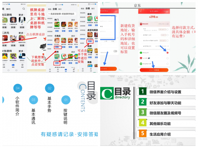 本次活动以线上教学形式开展,在7次的线上教学中,志愿者讲师以老人需求为纲,设计课程内容,团队合作,试讲备课,教学相长,不断完善教学方法,提高教学维度,不仅为老人们讲解了最基本的界面设置、软件下载等简单功能,还介绍了健康码、移动支付、滴滴打车、音乐视频等日常软件的使用。志愿者们在进行PPT教学的同时,结合在线屏幕共享演示、在线互动答疑的方式,使课程更简单易懂;课后耐心积极地回答微信群中学员的疑问,帮助巩固课堂内容。志愿者们用心为老人们提供实用的手机教程,将智能手机带来的障碍化为便利。