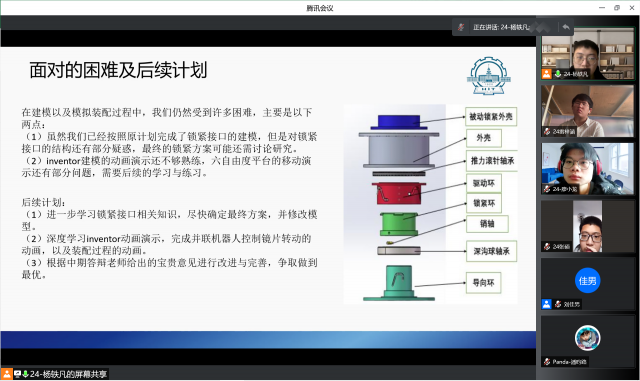 本次中期答辩包括各项目小组中期进度汇报和评委老师提问两个环节,共有63个项目组参加。同学们从项目进展情况、作品的先进性与创新性、结题目标等方面汇报了自己所研究的课题。答辩老师针对每一个项目从建立模型的合理性、项目的可完成度、后续的研究方向等方面给出了指导建议,同时也对中期报告书的规范性给出了相关建议。答辩结束后,各项目组同学将根据评委老师的评审意见认真修改中期报告并进一步完善创新作品。