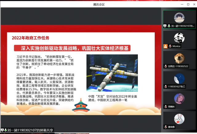 (文/宋宁宁)为深入学习2022年政府工作报告内容,丰富政治理论学习内容,MK体育2019级本科生第二党支部于2022年4月25日18:30在线上召开了四月组织生活。本次组织生活由第一党小组成员狄可欣同志主持,支部党员同志全员参与。