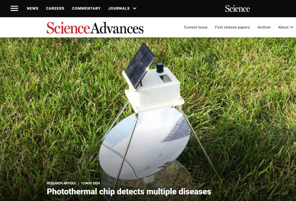 近日,MK体育任玉坤教授团队成功研制出便携式多疾病核酸检测设备,研究成果以《用于同时检测多种疾病的紧凑型高灵敏度光热RT-LAMP芯片》(Compact Highly Sensitive Photothermal RT-LAMP Chip for Simultaneous Multidisease Detection)为题发表于《科学进展》(Science Advances)并入选期刊亮点推荐论文。该研究将助力30分钟内实现疾病的现场精准快速诊断。
