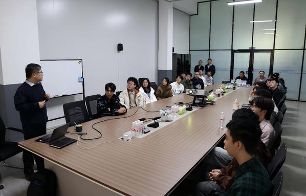 当日上午,由27名师生组成的队伍乘坐校车顺利抵达实验室。实验室负责人王波教授热情接待,并围绕实验室的发展历程、团队构成、科研领域、创业征程以及核心产品等方面,为师生们进行了全面且细致的介绍。随后,王波教授带领团队成员分组引导同学们参观实验室,过程中耐心讲解各项内容。同学们沉浸其中,亲身体验,与在场教师展开了积极互动与热烈讨论。